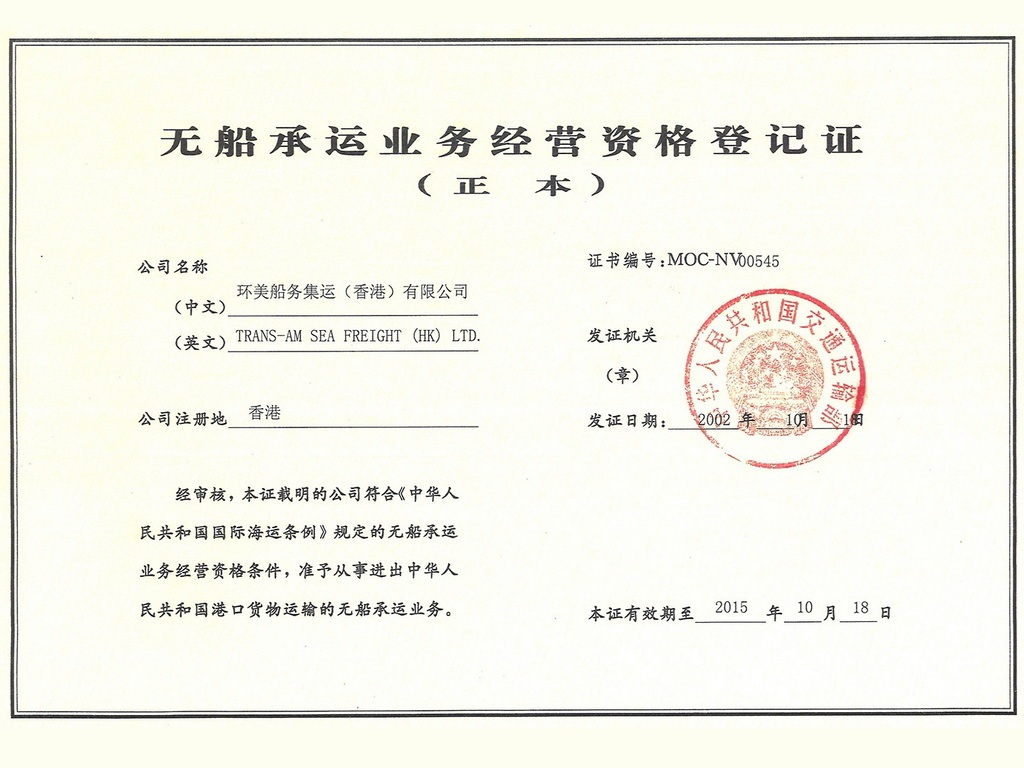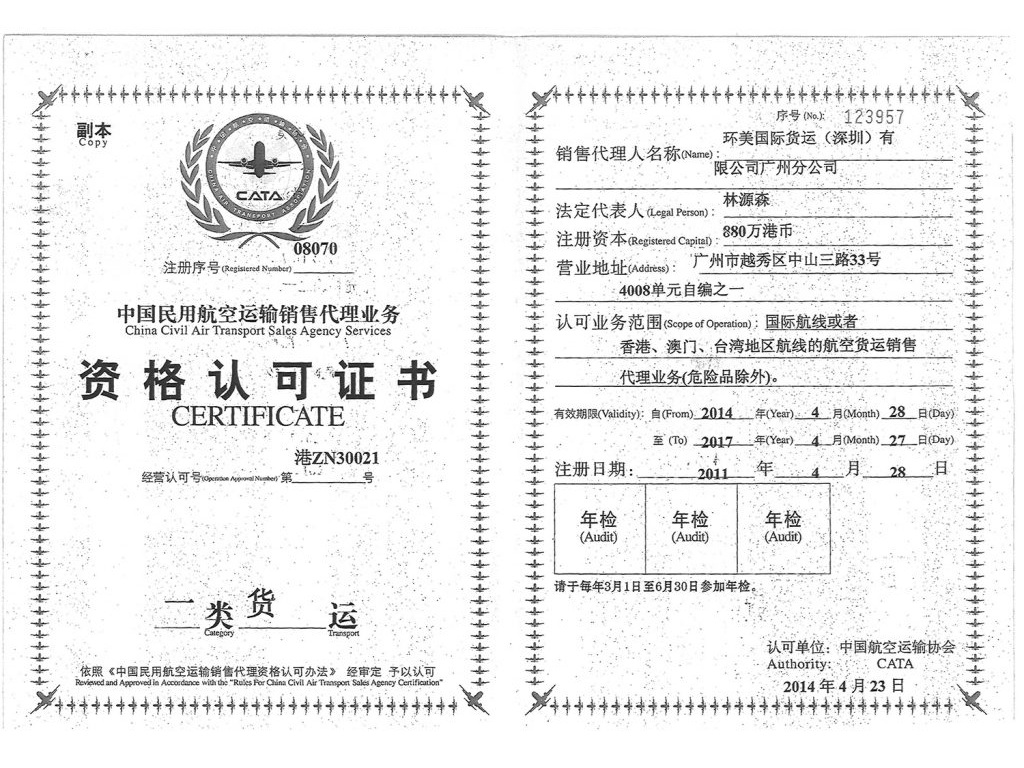 环美航空货运(香港)有限公司和环美船务集运(香港)有限公司于1986年一月在香港成立,为环球货运及物流服务公司。一直以来,集团稳步发展,成为香港同业中最大的集团之一,并于各地港口设分支,包括:纽约、洛杉 矶、三藩市、芝加哥、多伦多、蒙特利尔、越南,台湾及中国主要城市,当中包括:北京、上海、天津、重庆、广州、长沙和深圳。环美是国际航空运输协会(IATA)的成员,经中国交通部注册的无船承运人(NVOCC),并拥有C-TPAT认证。作为一个信誉良好的服务网络,我们为大多数主要的空/海运承运商承包代理。 因此,我们有能力处理大型运输,如:跨国音乐会/电影制作的设备,世界性博览会之展品,以及小型包裹。