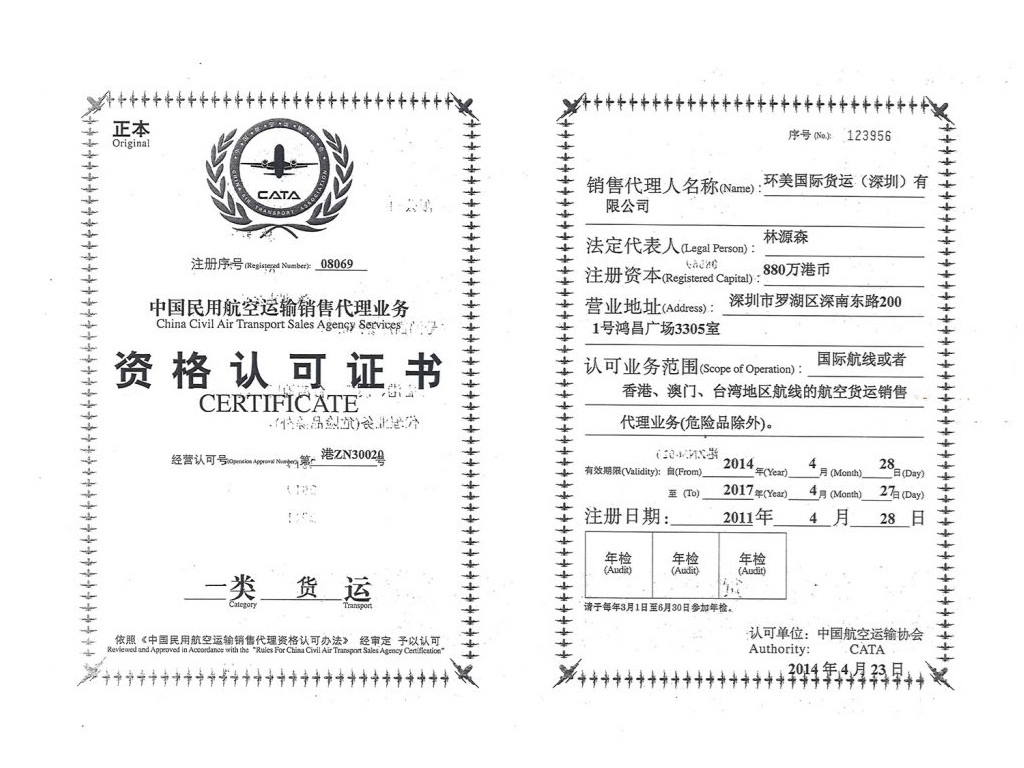环美航空货运(香港)有限公司和环美船务集运(香港)有限公司于1986年一月在香港成立,为环球货运及物流服务公司。一直以来,集团稳步发展,成为香港同业中最大的集团之一,并于各地港口设分支,包括:纽约、洛杉 矶、三藩市、芝加哥、多伦多、蒙特利尔、越南,台湾及中国主要城市,当中包括:北京、上海、天津、重庆、广州、长沙和深圳。环美是国际航空运输协会(IATA)的成员,经中国交通部注册的无船承运人(NVOCC),并拥有C-TPAT认证。作为一个信誉良好的服务网络,我们为大多数主要的空/海运承运商承包代理。 因此,我们有能力处理大型运输,如:跨国音乐会/电影制作的设备,世界性博览会之展品,以及小型包裹。